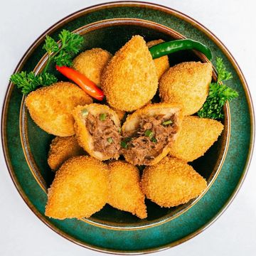 A beloved Brazilian street food favorite! Seasoned ground beef, fresh Roma tomatoes, sauteed onions, aromatic spices, and bright cilantro. Crunchy exterior with a warm savory filling.