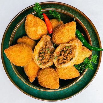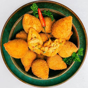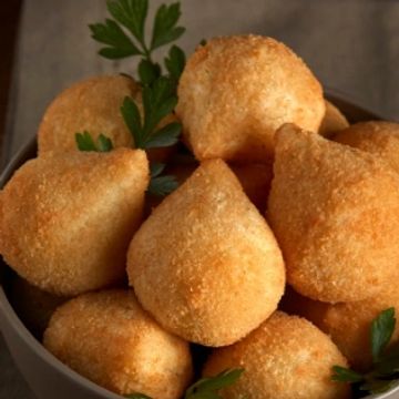 Our signature coxinhas are lovingly made daily by Master Chef's crafting genuine Brazilian flavors and traditional family recipes. Each teardrop-shaped croquette features a crispy golden exterior that gives way to a savory, creamy filling wrapped in our buttery potato-based dough.